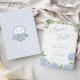 This beautiful design features blue hydrangea blooms and your custom text. On the reverse is a watercolor painted crest with a ribbon and hydrangeas. Use the template form to add your information.