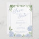 Blue Hydrangea Flowers Crest Save the Date Invitation