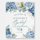 Blue Hydrangea | Flowers Leaves Bridal Shower Welcome Party Poster.