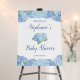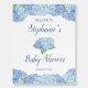 This baby shower poster features blue hydrangea flowers. Personalize it with a name and date. This poster is part of a collection featuring a full range of matching baby shower products.