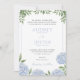 Blue Hydrangea Flowers, Personalized Crest Wedding Invitation