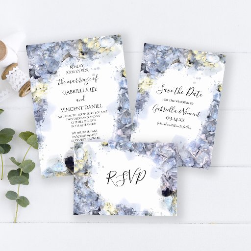 Blue Hydrangea Flowers Watercolor Bridal Shower Invitation