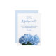 Blue hydrangea flower cards, created for brides to ask members of the bridal party, “Will you be my - fill in the blank”. Pretty, realistic blue hydrangeas make a border along the bottom. Flat, white cards have black, modern script font with light blue printed text for the title - fill in with “bridesmaid”, “maid of honor”, “matron of honor”, “junior bridesmaid”, or whatever is needed. The text is set up in letter form beginning with “Dear (name)”. The bride can include a short message to the recipient. Shown in the smaller size cards, with others to choose from. Also, upgrade the paper as you wish to make it more special. Reverse is light blue.