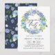 Blue Hydrangea Flowers Wreath Engagement Party Invitation