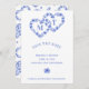 Send a save the date for your spring wedding featuring two blue hydrangea hearts intertwined with the couple’s initials inside. This is perfect for a spring or garden wedding and coordinates with other items in the Blue Hydrangea Wedding collection.