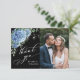 Blue Hydrangea Lantern Black Boho Photo Wedding Thank You Card