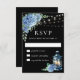 Blue Hydrangea Lantern Black Boho Wedding RSVP Card
