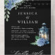 Blue Hydrangea Lantern Black Wedding QR code All In One Invitation