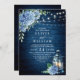 Blue Hydrangea Lantern Navy Wood Wedding Invitation