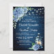 Blue Hydrangea Lantern Navy Wood Wedding Invitation