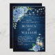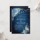 Blue Hydrangea Lantern Navy Wood Wedding Invitation