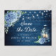 Blue Hydrangea Lantern Wedding Save the Date Postcard