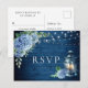 Blue Hydrangea Lantern Wood RSVP Meal Choice Postcard