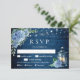 Blue Hydrangea Lantern Wood Wedding RSVP Card.