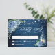 Blue Hydrangea Lantern Wood Wedding RSVP Card.
