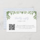 This beautiful wedding enclosure card, part of the Blue Hydrangea Blooms Collection, features greenery, a custom QR Code and your text. The reverse is a thin watercolor stripe, which can be deleted for a solid color back. Use the template to fill in your information. The "Customize further" feature can be used to change the font (size, style, color), and add more lines of text, change the layout and add text to the back.