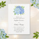 Blue Hydrangea Leaves Floral Watercolor Wedding Invitation