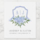 Blue Hydrangea Monogram Crest Customized Wedding Wine Label