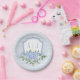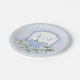 Blue Hydrangea Monogram Crest with Stripes Paper Plates