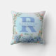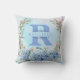 Pretty floral, monogram pillow - lovely shades of blue hydrangeas surround your initial and name! The same design is on both the front and back. Be sure to choose your size and fabric prior to placing it into your shopping cart.