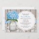 Blue Hydrangea Monogrammed Mason Jar Bridal Shower Invitation