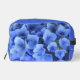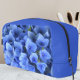 Zippered dopp kit toiletry bag that features the photo image of blue Hydrangea flower petals with matching, solid blue top and side panels. A lovely, floral design! Perfect accessory bag for your toiletries for on-the-go travel!
