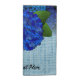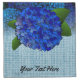 Colorful floral print cloth napkins with blue hydrangea flowers design and custom personalised text.