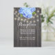 Blue Hydrangea & String Lights Barn Wood Reception Invitation
