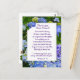 This beautiful blue hydrangea postcard comes with a little poem and a verse from the Bible "I thank my God upon every remembrance of you" Philippians 3:1 Show a dear friend how much you appreciate them, and thank God for their help, kindness and friendship, with this pretty postcard. On the reverse side a spray of flowers with butterfly. It's easy to remove these if you wish, or change the text to suit other occasions and situations.