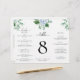 This menu serves a dual purpose, serving as both a table number and a menu display. Its versatile design allows you to easily highlight the table number while also providing ample space for both the dinner and drink menus. Once printed fold the page into three sections and secure the triangle shape with either a line of glue or double-sided tape along the glue tab. The artwork includes fold lines that you can delete before purchasing.