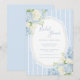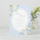Beautiful blue and white watercolor hydrangeas on a blue and white stripe background. A vintage frame adorns your event details and soft coordinating blue fonts. Absolutely beautiful.