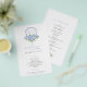 This beautiful design features blue hydrangea blooms and your custom text along with watercolor painted crest with a ribbon and hydrangeas. Use the template form to add your information. The Customize Further feature can be used to access the advanced editing menu where you can change the font, colors and layout of the text.