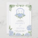 This beautiful design features blue hydrangea blooms and your custom text along with watercolor painted crest with a ribbon and hydrangeas. Use the template form to add your information.
