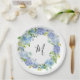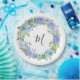 Blue Hydrangea Watercolor Floral Monogram Paper Plate