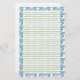 A pretty blue hydrangea blossom lined stationery paper on a white background. The blossoms were painted in watercolor. Great for keeping in touch, journaling or crafting!