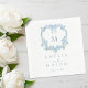 Blue Hydrangea Watercolor Monogram Crest Wedding Napkins. Celebrate your special day with these elegant watercolor paper napkins. Featuring a delicate blue hydrangea wreath encircling a classic monogram, these napkins add a touch of French charm and sophistication to your wedding reception or bridal shower. The soft blue hues and natural rustic floral design create a romantic and timeless aesthetic, perfect for spring and summer wedding themes. Personalize them with your initials and wedding date to create a memorable keepsake for your guests and a beautiful accent for your table settings, bar area, or dessert table.