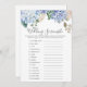 Blue Hydrangea Wedding Word Scramble Game Card