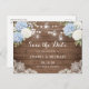 Rustic Wood Lace Mason Jar Wedding Save the Date. Rustic Wood String Lights Wedding Save the Date Card. White & Blue Hydrangea Floral Wedding Save the Date Card