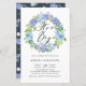 Invite guests to your event with this customizable It's a Boy baby shower invitation. It features a beautiful floral wreath of blue hydrangeas and roses. Personalize this floral invitation by adding your details. This hydrangea baby shower invitation is perfect for spring and winter baby showers. Matching items are available.