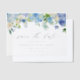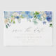 Announce your special day with elegance using our customizable save the date card. This botanical save the date card watercolor floral garland of blue and purple hydrangeas, ivory roses, and greenery accents, this design is printed on premium vellum paper for a sophisticated, semi-transparent finish. This blue hydrangea save the date vellum card is perfect for spring, winter, or garden weddings, it offers a timeless and romantic touch.