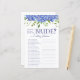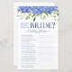 This lovely blue hydrangeas How Well Do You Know The Bride? bridal shower game sheet is elegant and charming - perfect for any garden, botanical, rustic, romantic, floral, formal or vintage wedding. Its exquisite combination of graceful multi-hued blue hydrangeas and wispy greenery is flowy, delicate, and beautiful. This fun and easy game is sure to bring lots of laughter to any bridal shower! Simply give a sheet to each guest (don't forget the pens) and let the fun begin! You'll be amazed at how many people know answers. To make this game your own simply select Personalize this template and type in the bride's name.