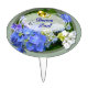 Beautiful blue hydrangeas with wedding rings and text, which can be personalized to suit your needs, or removed altogether if you wish. Very nice for engagement or anniversary cakes.