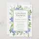 Plain white envelopes are included with paper invitations and will come to fit the invitation size you select. If you don’t need the envelopes, you may choose to not receive them by selecting the dropdown below "Envelopes" and choosing "None." If you’d like to have a design on your envelopes, you can browse all of these available envelopes to find the design that complements your Blue Hydrangeas Couples Shower Invitation.