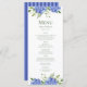 This chic and elegant, blue hydrangea engagement party menu is perfect for your tables at your engagement party. It has sections for first course, second course, sides and dessert. The templates are super easy to use, so making this your own will take just a minute or two. Definitely place one on every place setting at your party so that your guests will know the amazing food options you have made available for them and so that they can effortlessly order their choices as your dinner service progresses.