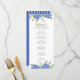 This chic and elegant, blue hydrangea engagement party menu is perfect for your tables at your engagement party. It has sections for first course, second course, 3 entrée options and dessert. The templates are super easy to use, so making this your own will take just a minute or two. Definitely place one on every place setting at your party so that your guests will know the amazing food options you have made available for them and so that they can effortlessly order their choices as your dinner service progresses.