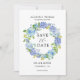 Blue Hydrangeas Floral Wreath Save the Dates Cards