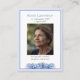 An elegant memorial photo funeral memorial prayer cards featuring pretty blue hydrangea flowers. You can customize with your chosen prayer, psalm or poem. Elegant blue pink flowers on simple white background. Makes great keepsake.