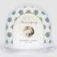 Looking for Christmas gift for husband and wife? The Blue Hydrangea Gold Custom Photo 40th Anniversary Snow Globes feature beautiful watercolor with blue hydrangeas, greenery, and a digital gold effect. Personalized photo snow globe! You can personalize the navy blue text and add an image by selecting "Personalize this template," or if you want to customize this design even further (background color, font, etc.), please select "Edit using the Design tool."