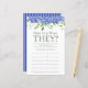 This lovely blue hydrangeas How Old Were They? bridal shower game sheet is elegant and charming - perfect for any garden, botanical, rustic, romantic, floral, formal or vintage wedding. Its exquisite combination of graceful multi-hued blue hydrangeas and wispy greenery is flowy, delicate, and beautiful. This fun and easy game is sure to bring lots of laughter to any bridal shower! Have family and friends send you pictures of the bride and groom at all different ages and have them printed. Number them and set them near these game sheets. Simply give a sheet to each guest (don't forget the pens) and let the competition begin! You'll be amazed at how many people really know the ages of the bride and groom. In seconds you can see how your game sheet will look. Simply select Personalize this Template and type in the names of the bride and groom.