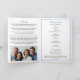 The front features an oval shaped portrait photo, while the inside includes space for the obituary, order of service, and a family photo. The back offers a customizable section for a poem, prayer, or acknowledgment.